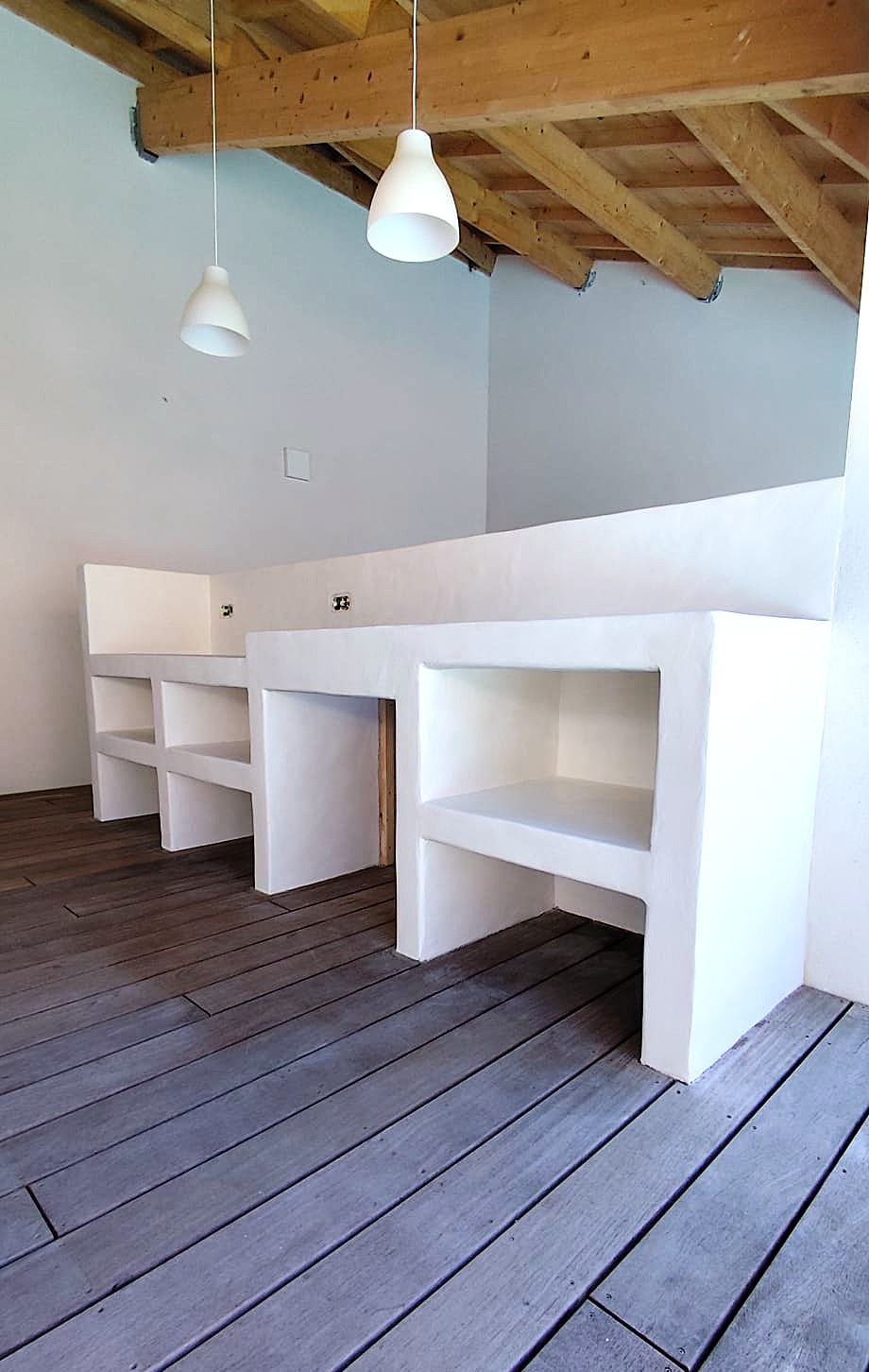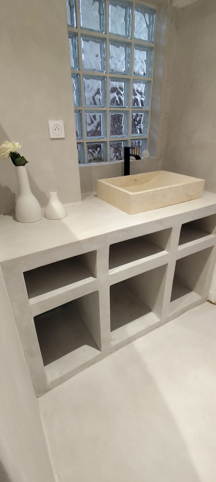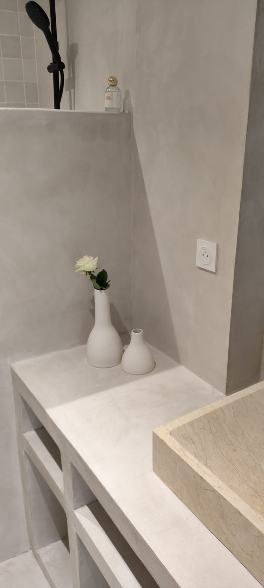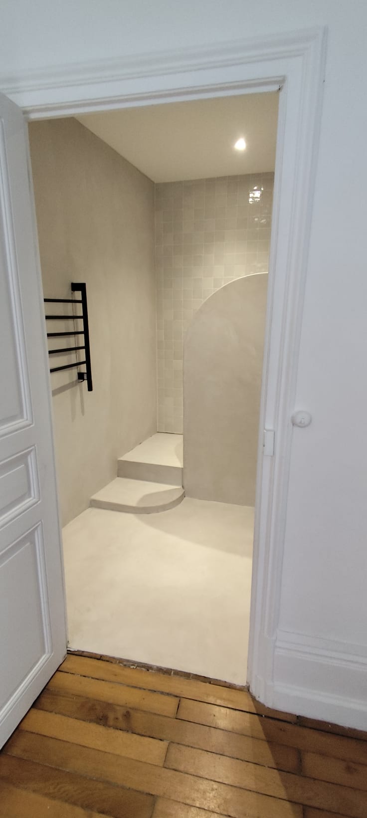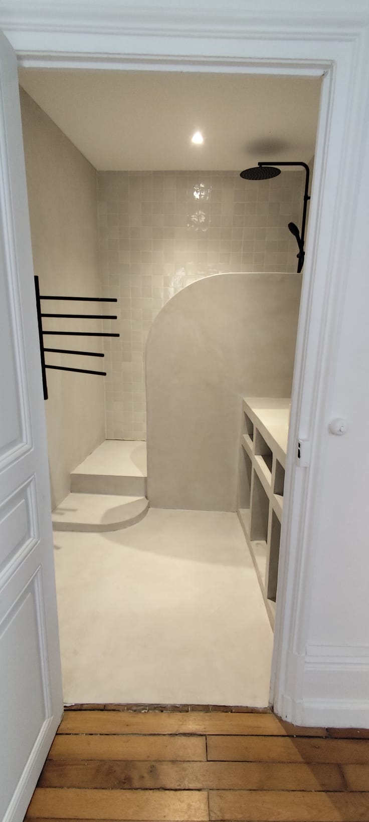 Grâce à sa finesse, nous adaptons la pose de béton ciré sur de nombreux supports tels que les sols, les murs les escaliers mais également les douches.
